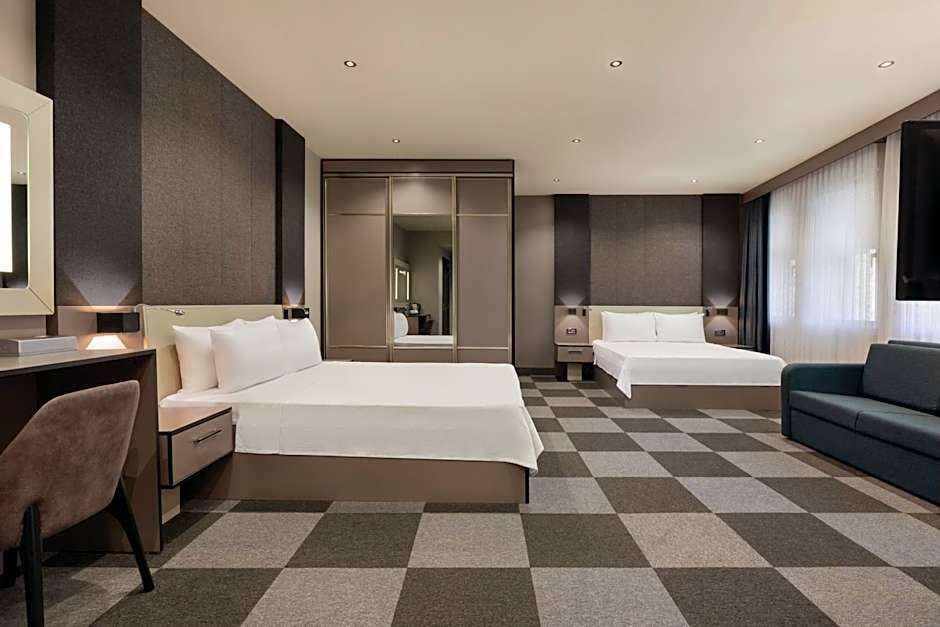 The spacious triple room features air conditioning, a mini-bar, as well as a private bathroom boasting a shower and a hairdryer. The triple room provides a tea and coffee maker, a wardrobe, a safe deposit box, a carpeted floor and a TV. The unit has 2 beds.